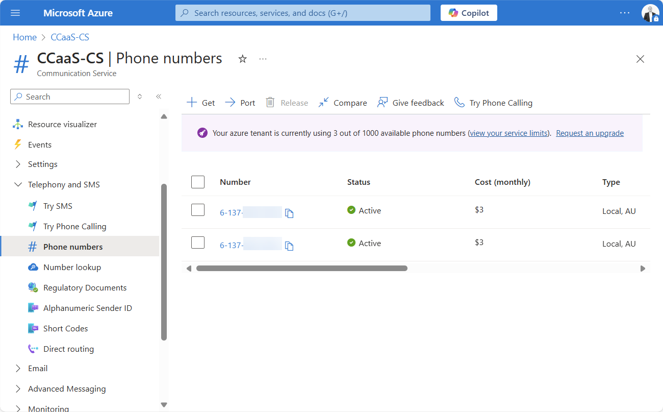 Side note: In Australia, Azure Direct Routing was the only way that PSTN numbers could be commissioned within ACS, at least initially. Phone Numbers provided by Microsoft were not supported in all global locations on release. That’s now changed, Australian numbers can now be requested, but you do still have to fill out a special request via the Phone Number Service Center. Takes a day or two to process, so if you do plan to use this method, plan ahead.