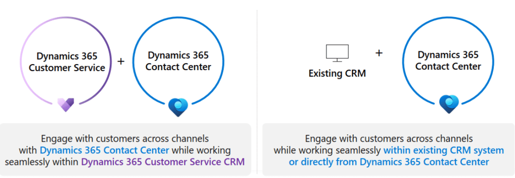 Prior to the June 2024 announcement, the only option for voice channel within Dynamics was within the Customer Service product: a full-blown CRM platform, with a focus on managing customer interactions and cases end to end. The addition of voice channel was great for existing Dynamics 365 Customer Service customers that wanted to expand on omnichannel capabilities and add voice, or for greenfield deployments where Dynamics 365 Customer Service made sense. But what about organisations that were using something else for CRM and case management? Perhaps they were using something else already (Salesforce or Service Now for example)? That’s what the 2024 announcement was all about: the release of Dynamics 365 Contact Center which would allow for deployment alongside an existing CRM platform – opening up a greater number of deployment scenarios and opportunities – a standalone contact centre solution:
