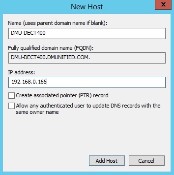 - Choose a FQDN for your Spectralink server, and add it to DNS. In this example, I’m using DMU-DECT400.dmunified.com