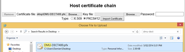 - From the Host Certificate Chain section, browse to the certificate file location, enter in the password and ensure you select PKCS#12