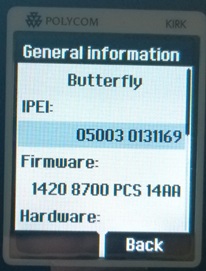 - From the Spectralink handset, go to Menu > Settings > Status > General Information, and note down the IPEI Number