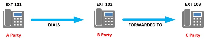 When displaying call flows for calls that are forwarded to another destination, it’s common to see the parties involved in the call flow referred to as A, B and C Party: