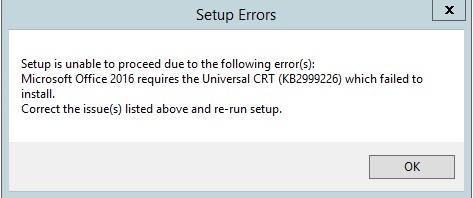 OOS is only supported on Windows Server 2012 R2. Also, make sure you install all Windows updates prior to deploying OOS. I deliberately tried to install OOS prior to doing this, and was presented with the below error. Installing all available updates resolved this issue: