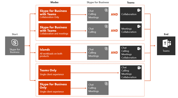 Look at the modes above, there’s one that matches what I’ve described is the expected outcome for Meetings First: Skype for Business with Teams Collaboration and Meetings: