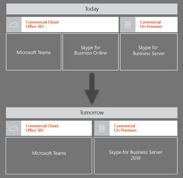 As depicted above, there is of course another Skype for Business (SfB) topology that’s out there supporting SfB users today, and that’s Skype for Business Server On-Premises. At the end of last year (2018), we saw the release of the latest on-premises server version: SfB Server 2019, with mainstream support through to 2023 (and expected extended support through to 2025). The key takeaway here is that there will continue to be Skype for Business users in one shape or another for some time.