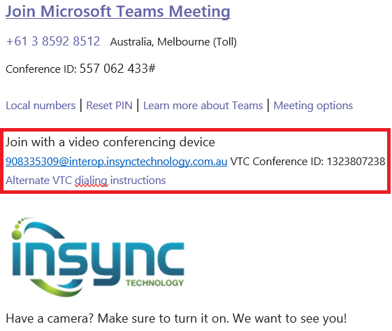 With no interop, and with an audio conferencing license assigned to my Office 365 account, here’s what a standard Microsoft Teams meeting invite looks like (logo\footer text is custom of course, configurable from the Teams Admin Portal):