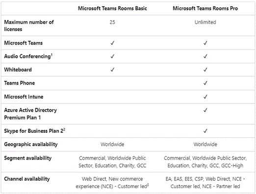 If you’re using Microsoft Teams Room systems or Surface Hubs in your organisation, these devices will be licensed to allow connectivity to Microsoft 365. Microsoft have two licenses available for Teams Rooms and Surface Hubs today: Teams Room Basic and Pro. These licenses superseded an earlier licensing model (Teams Room Standard and Premium, read more about them and the change to Basic and Pro here), and have all the components required to support your video conferencing devices in your rooms and spaces.