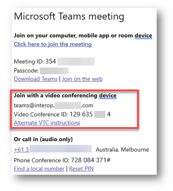 Here’s an example Teams meeting invite, showing standards-based meeting join info: