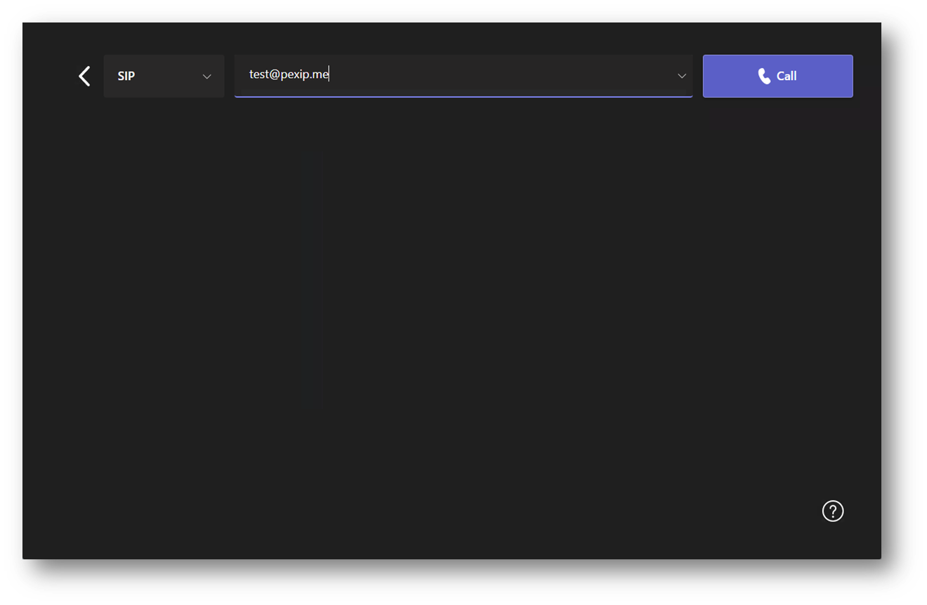 In this example, I’m dialling a handy test service Pexip make available: test@pexip.me. This works for test calls using SIP or H.323: