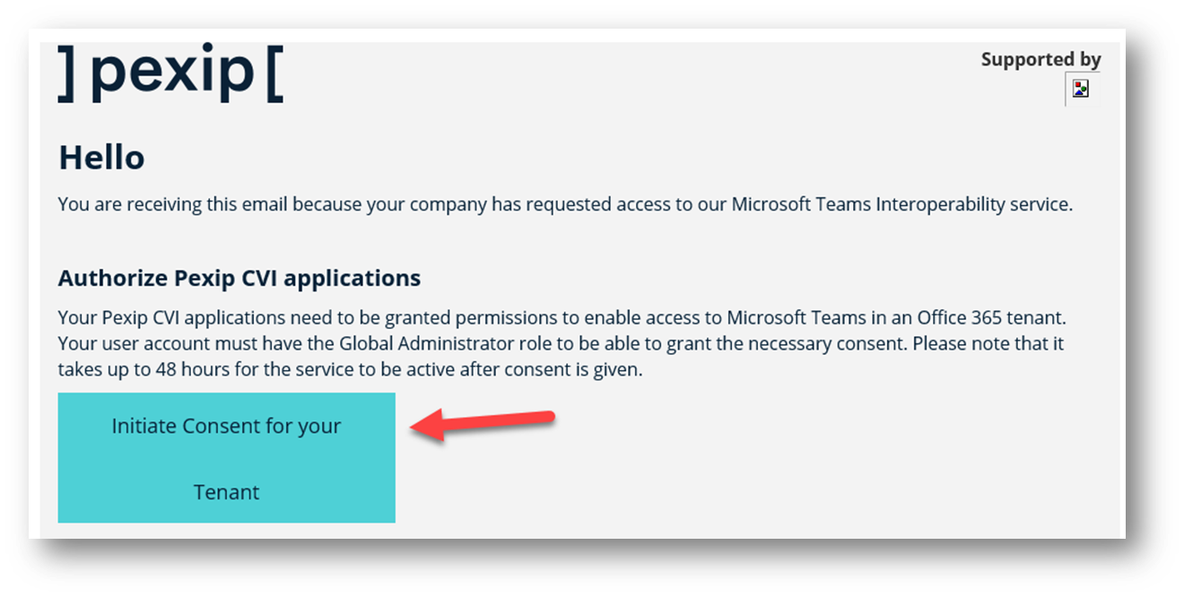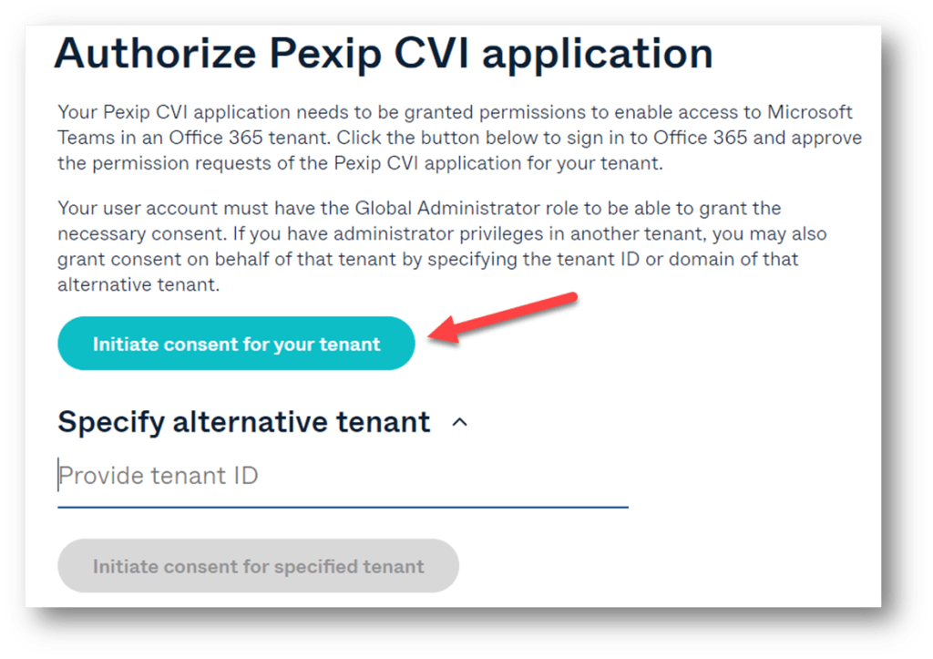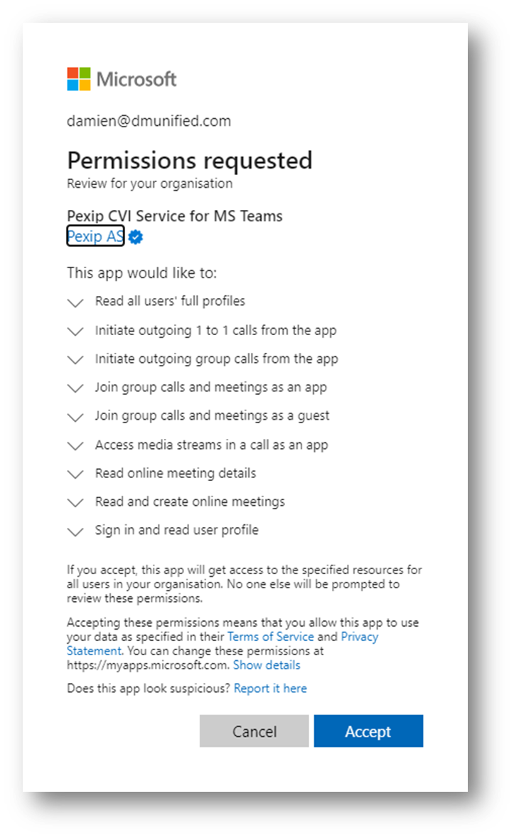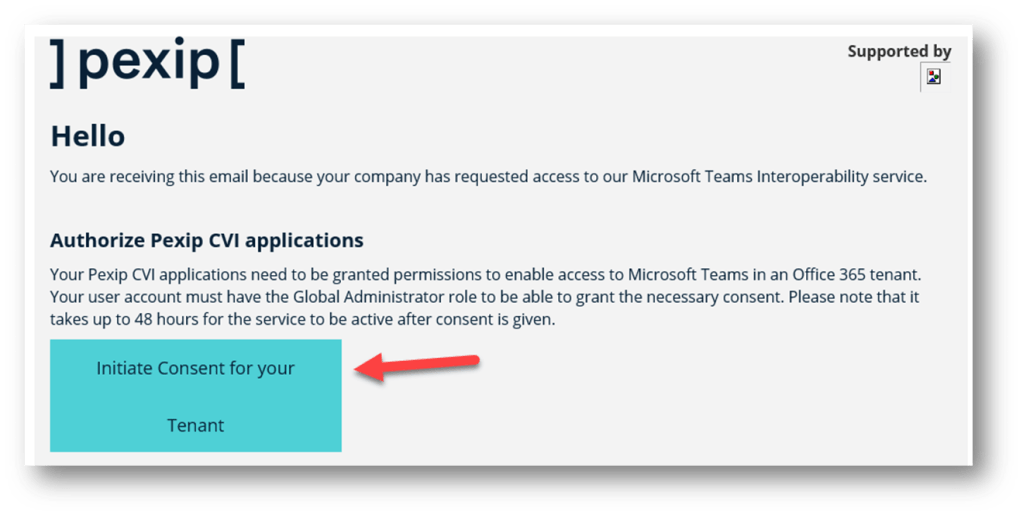 Once you have licensing in place from Pexip (or Poly), you’ll receive an email requesting consent to authorise Pexip CVI applications within you Microsoft 365 Tenant: