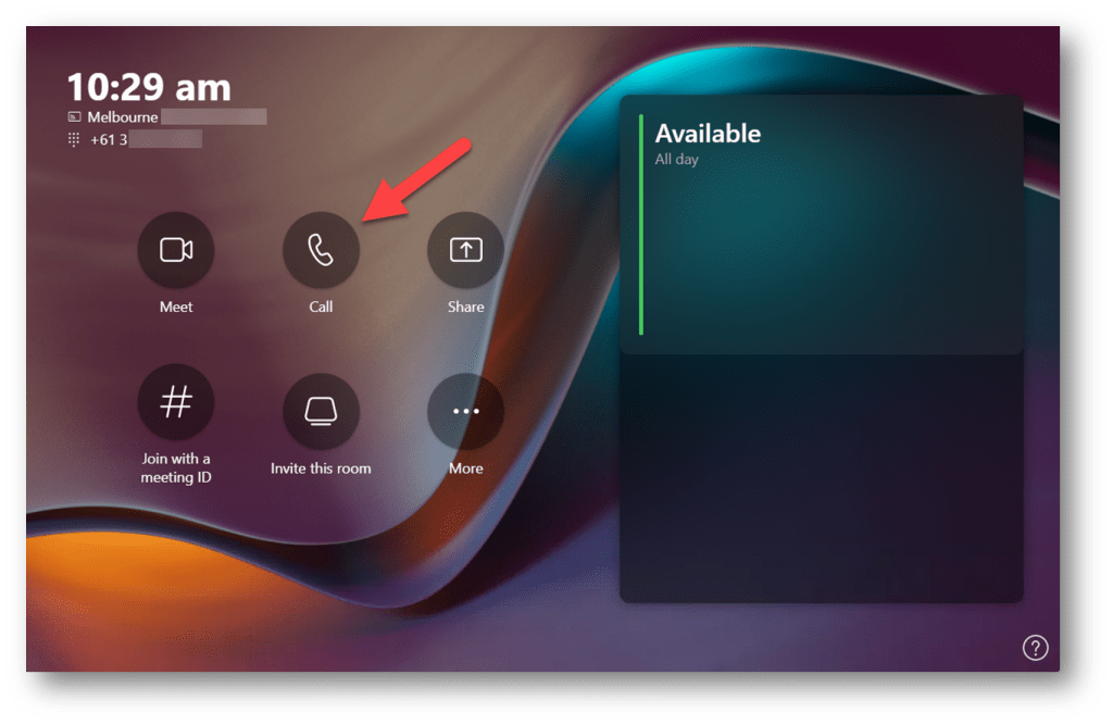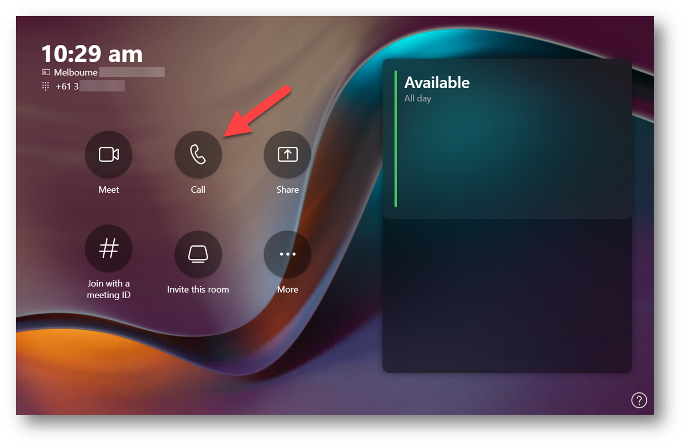 From your Microsoft Teams Room (Windows) touch panel, click on the Call button: