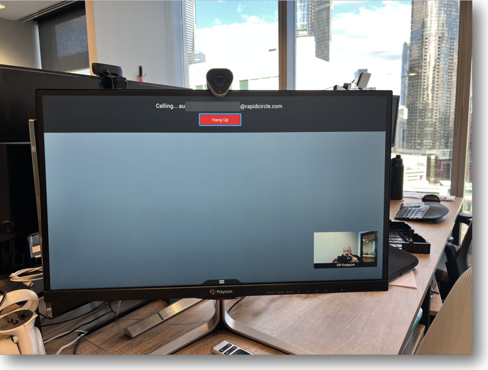 With all that in place, you should now be able to receive a SIP\H.323 call to your Microsoft Teams Room. Here’s an old but reliable Polycom Convene I recruited for this demo – dialling the MTR room address:
