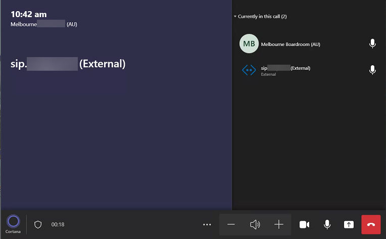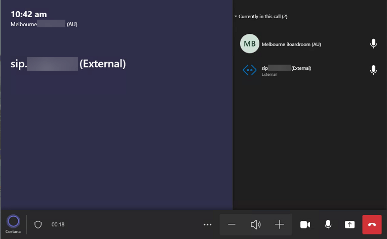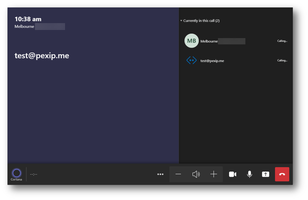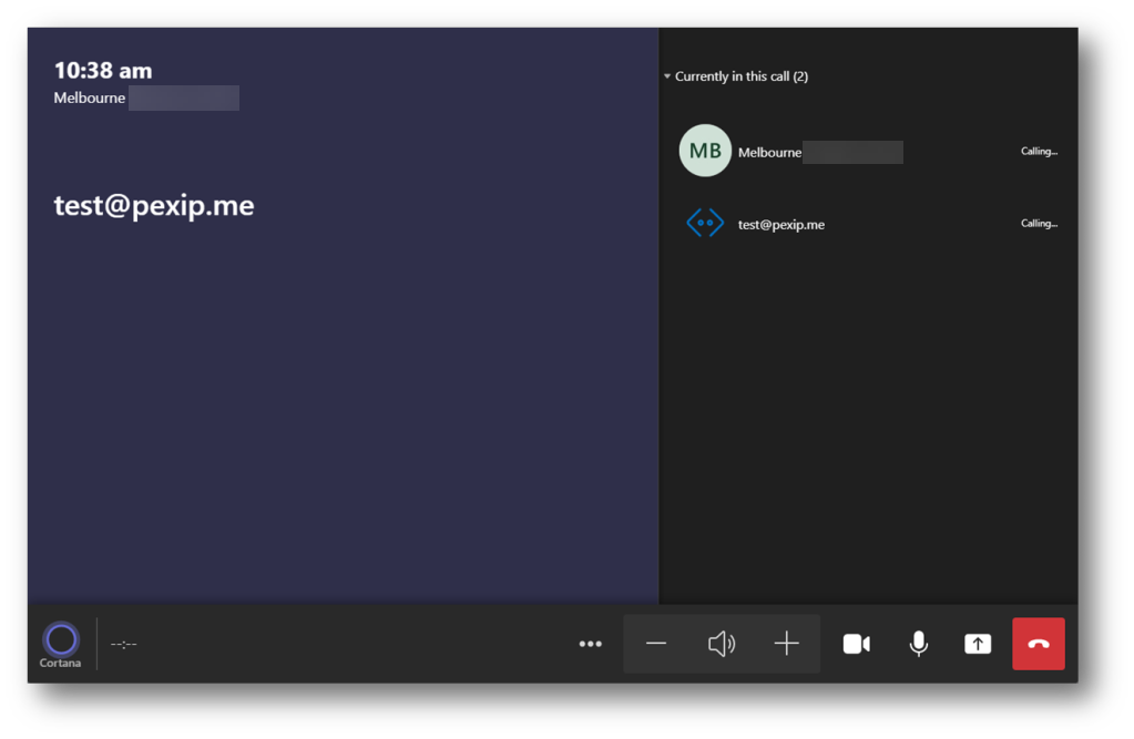 You can see in the call setup screen that the Teams Room system is dialling the Pexip interop bot: